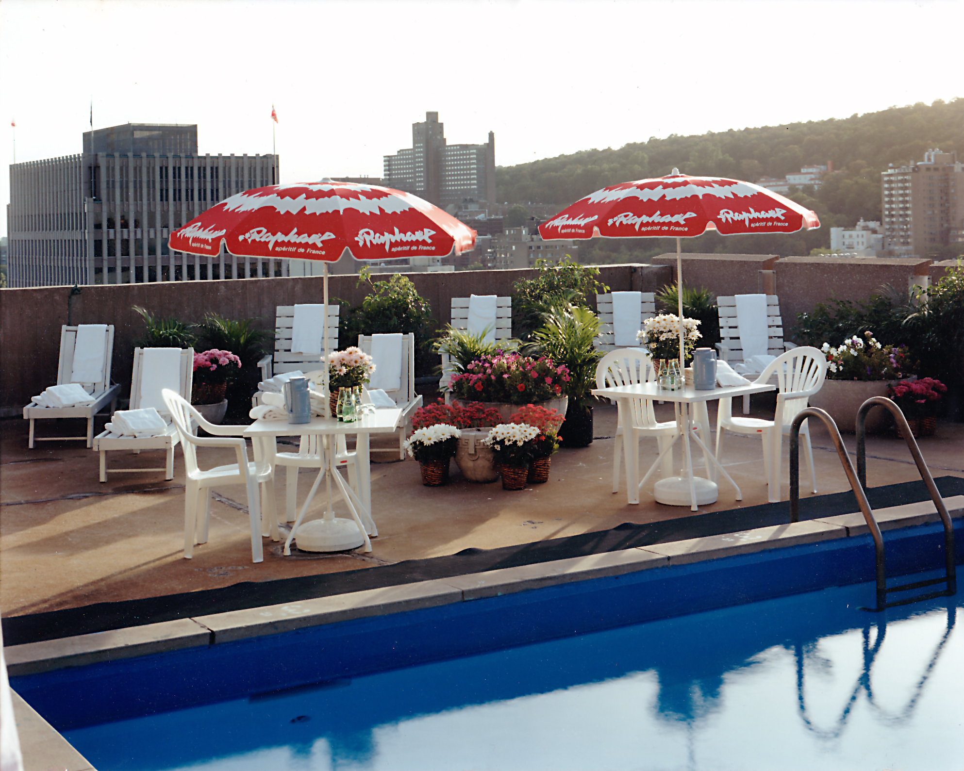 Heated seasonal outdoor rooftop pool and sun deck offering breathtaking views of the Montreal skyline.